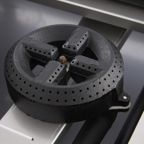 Parrilla a gas de 4 quemadores fabricados en hierro vaciado que maximizan el flujo de calor