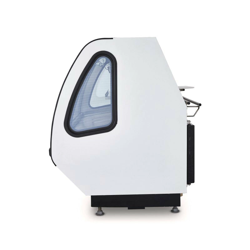 Vitrina carnicera auto contenida de color blanco de 2 m de largo, puertas posteriores de vidrio, congelador inferior ideal para establecimientos grandes de venta de carne.
