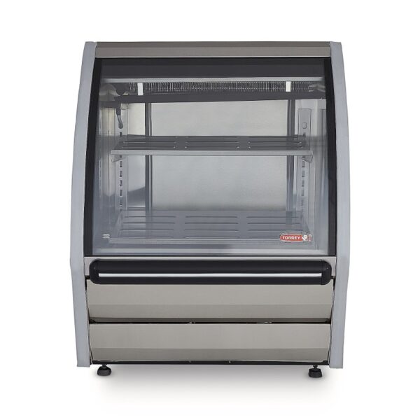 La Vitrina Exhibidora Torrey DRD3-AI es la solución definitiva para delis, carnicerías gourmet y pastelerías de alta gama. Con un frente de 91.5 cm y una construcción total en acero inoxidable, ofrece una durabilidad excepcional y una higiene inigualable, mientras que su cristal curvo panorámico garantiza una presentación espectacular de tus productos frescos.