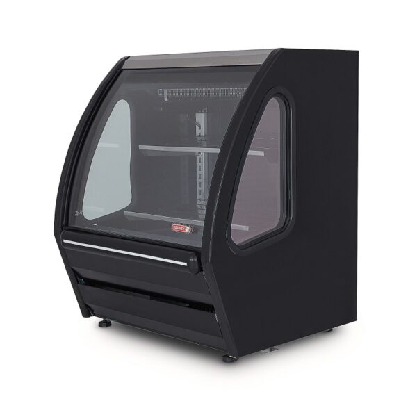 La vitrina exhibidora Torrey DRD3-N en acabado negro ofrece un contraste visual inmejorable que resalta los colores naturales de sus productos frescos. Equipada con un cristal curvo de doble panel para un aislamiento térmico eficiente, esta vitrina es la solución ideal para establecimientos que buscan una imagen contemporánea en su área de mostrador, garantizando que cada postre, lácteo o snack se mantenga en condiciones óptimas de temperatura.